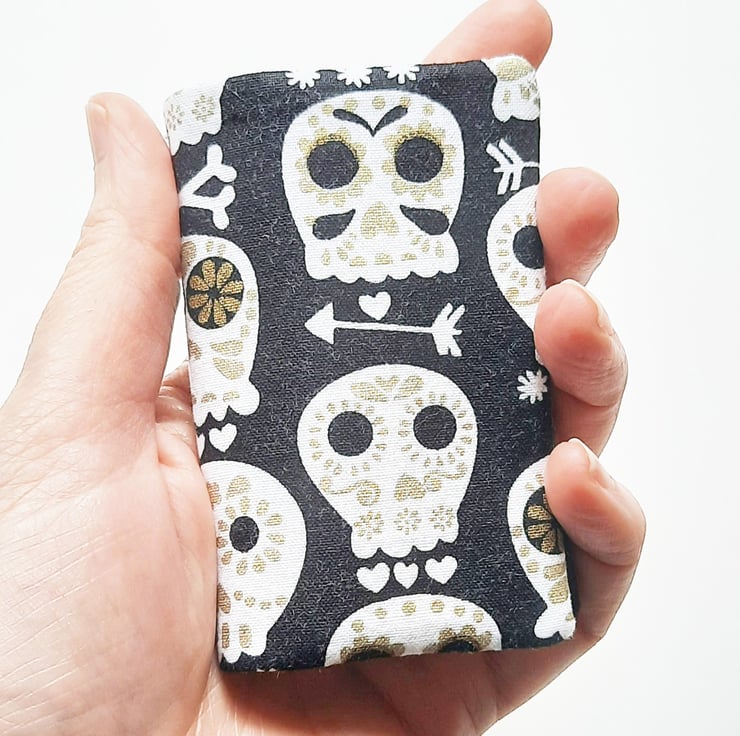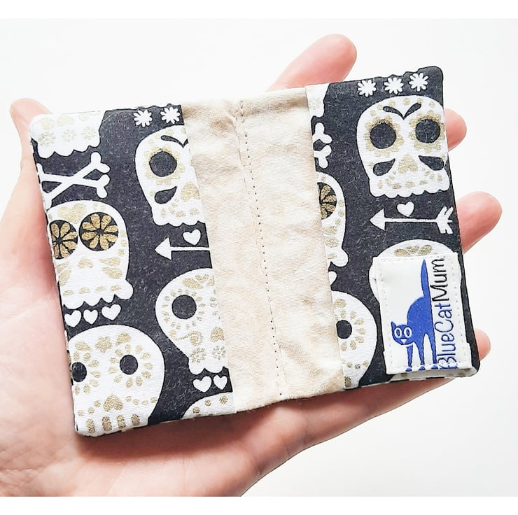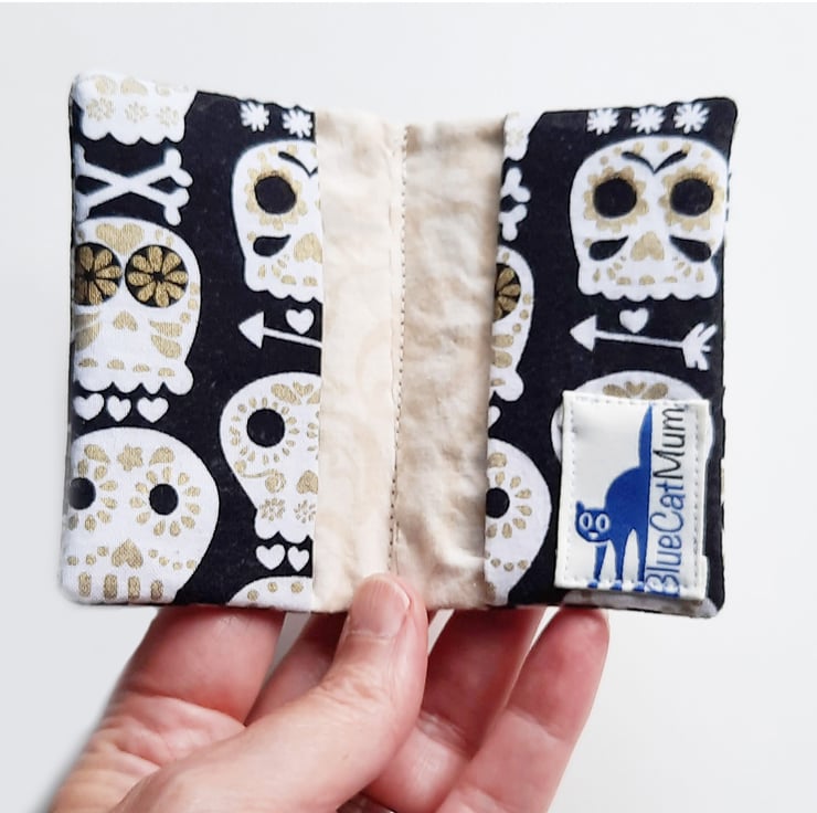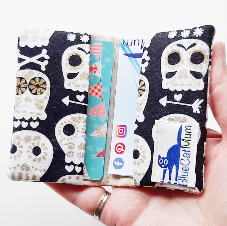 A small card holder, ideal for when you just want to keep a couple of credit cards safe. It will hold a maximum of 4 cards, but it can also be used for business cards. It will hold around 5 cards in each pocket, depending on the thickness of your card.