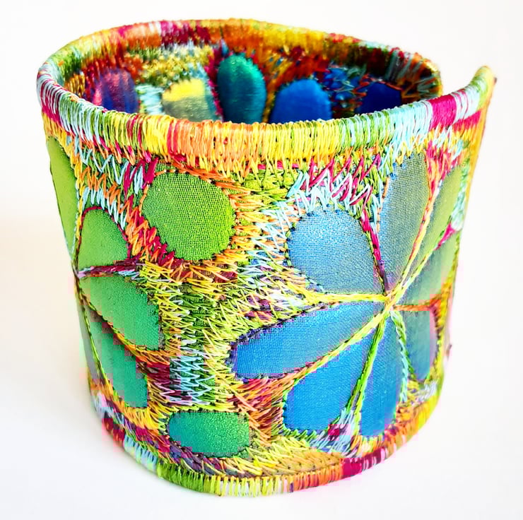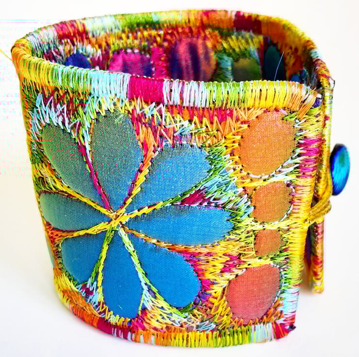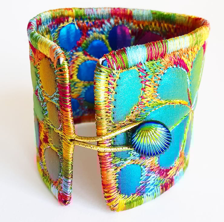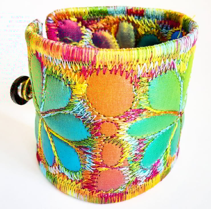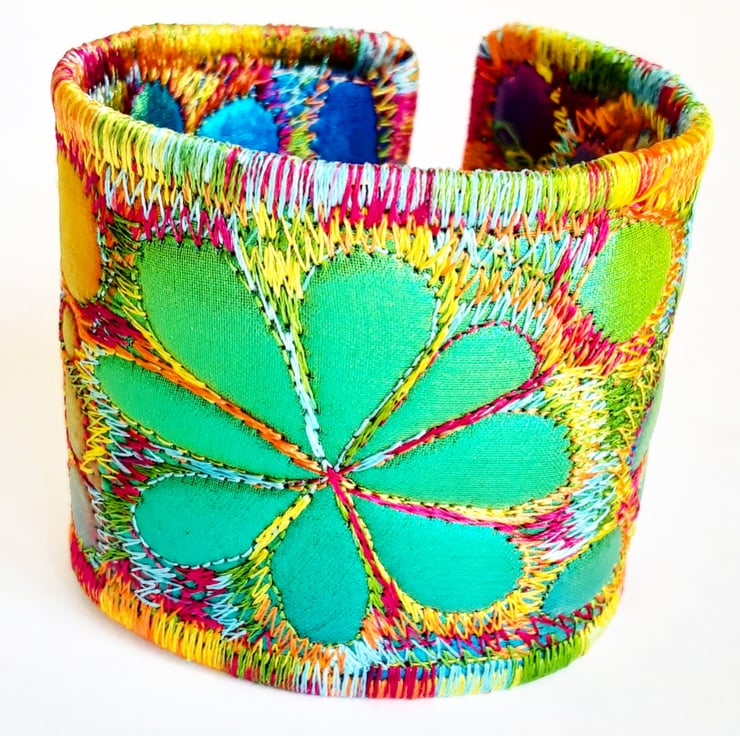 This is a handmade machine stitched fabric Stiched Silk Cuff or bracelet.