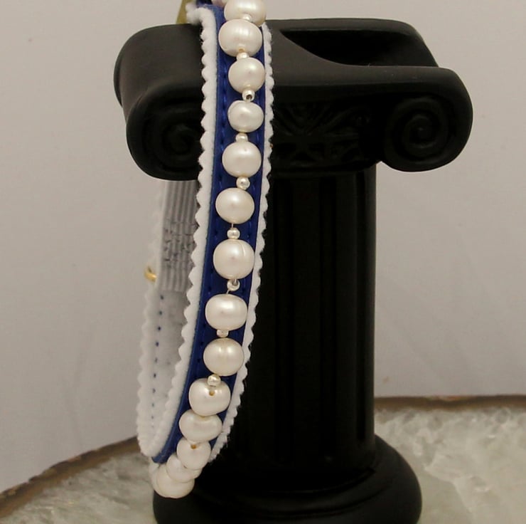 Grade AA 6- 6.5mm. Freshwater Pearls individually and professionally hand sewn to the highest standard .Adjustable with Elasticated strip for safety.