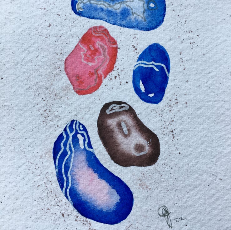 This is painted in watercolour on Khadi handmade watercolour paper, as part of a personal project based on shore and sea.