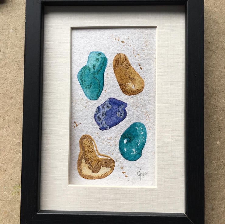 This is hand painted using quality watercolours on Khadi hand made watercolour paper. It measures approx 15cm x 10cm and has a hand torn deckle edge. It will be sent with a mount in a cello bag inside a sturdy envelope. Postage is free to U K destinations. If overseas, please contact me about postage. The frame is not for sale.