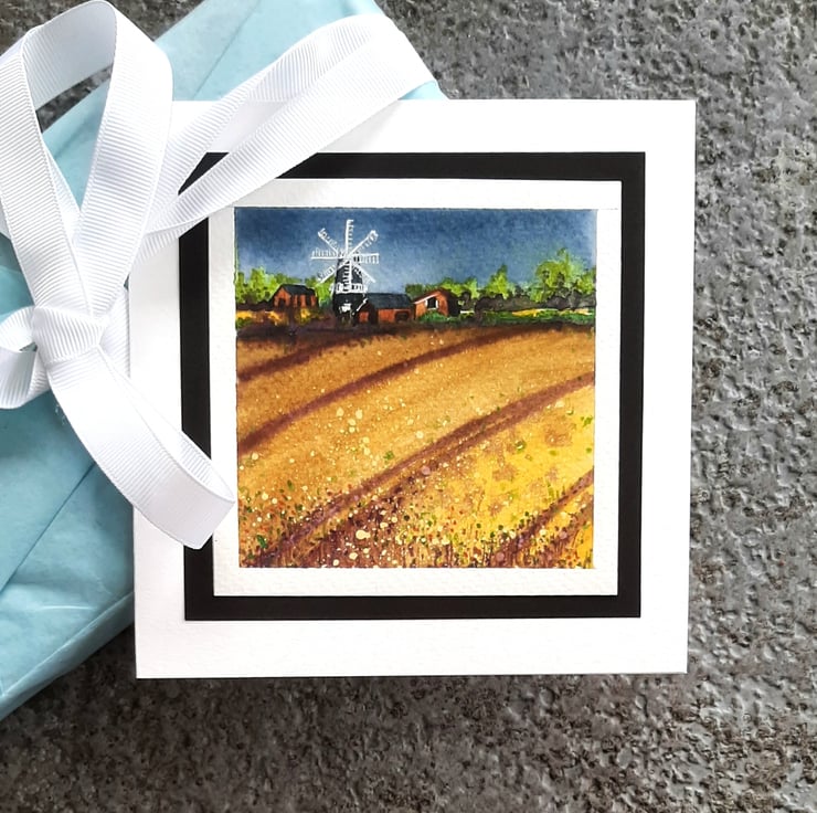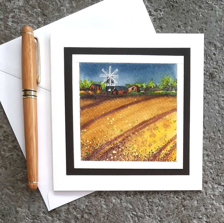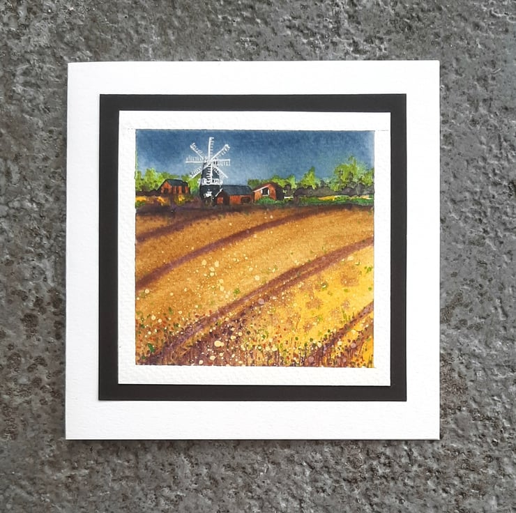 Watercolour card of Heckington Mill.