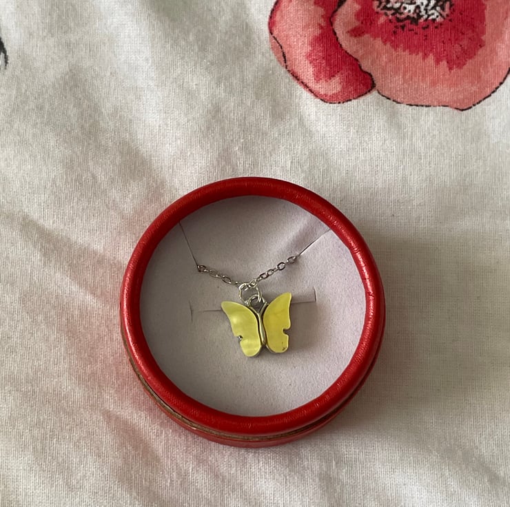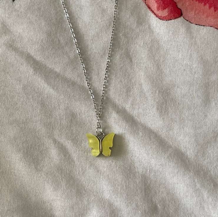 A gorgeous silver chain with a dainty yellow butterfly charm.
