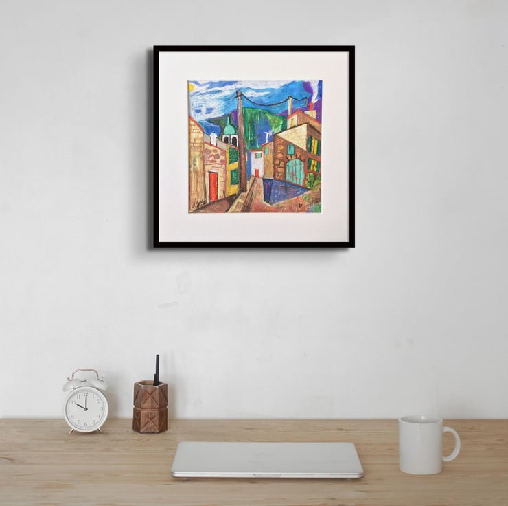 Painted after a very insparational trip to the cote d'azur, I used mixed media on board to capture the light and old stone that makes these quirky houses quirky!