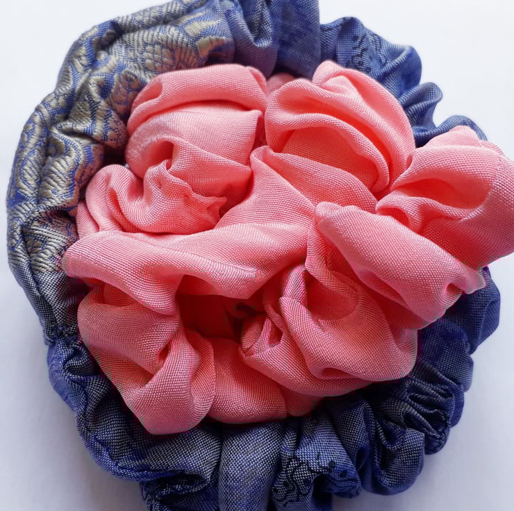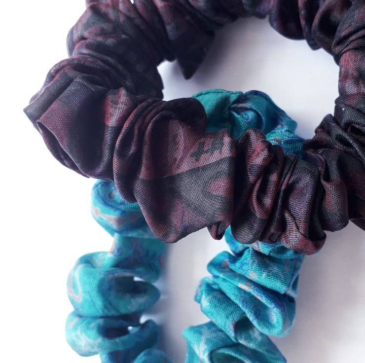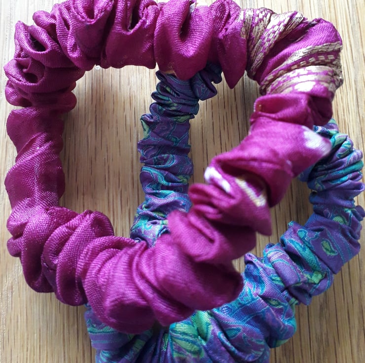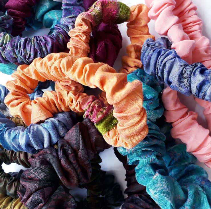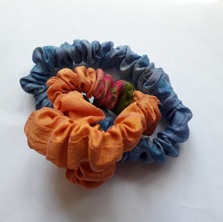 Set of 3 Handmade silk scrunchies from off cuts from the dresses that I have stitched.