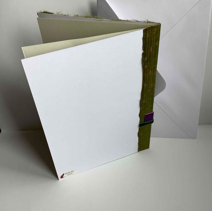 This is a handmade, original card which is blank for your own message. The card and envelope are white and the insert is ivory.