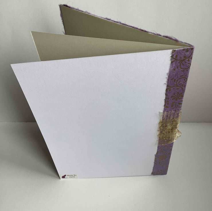 This is a handmade, original card which is blank for your own message. The card and envelope are white and the insert is ivory.