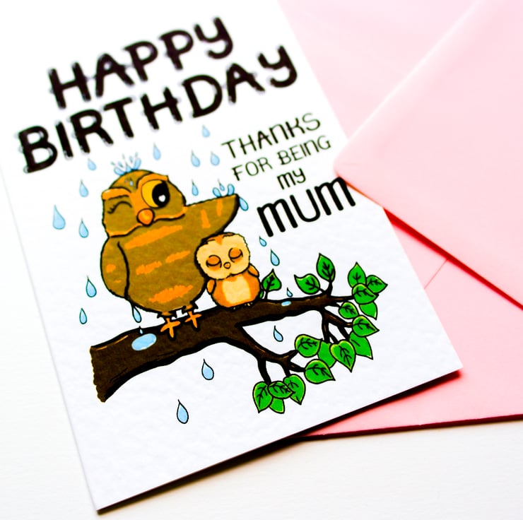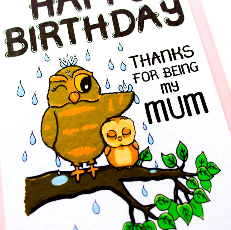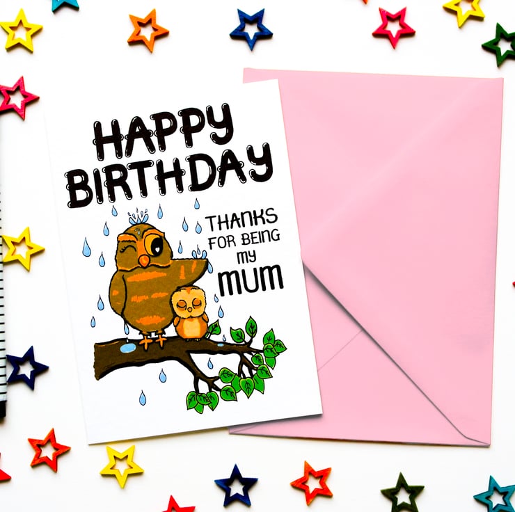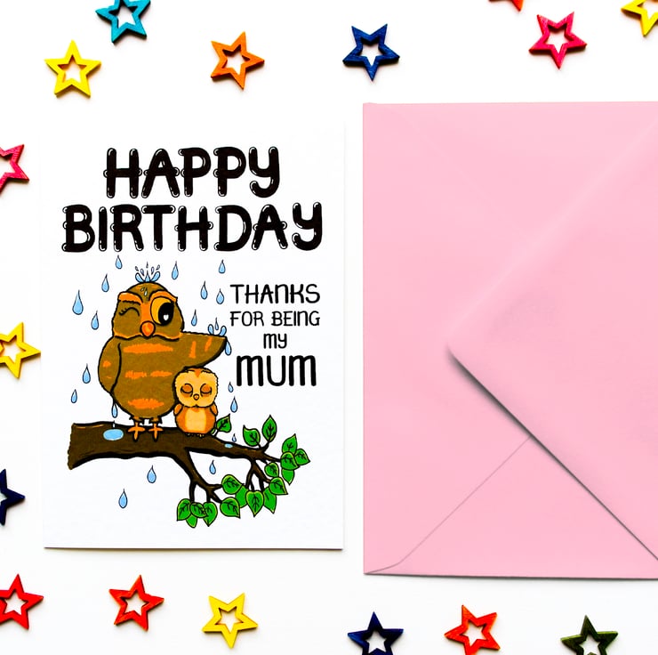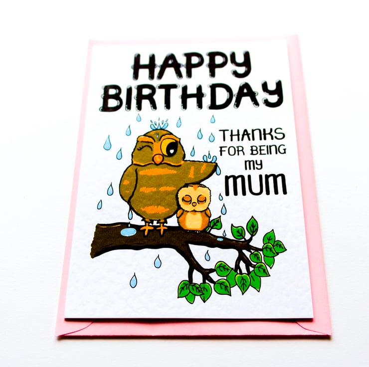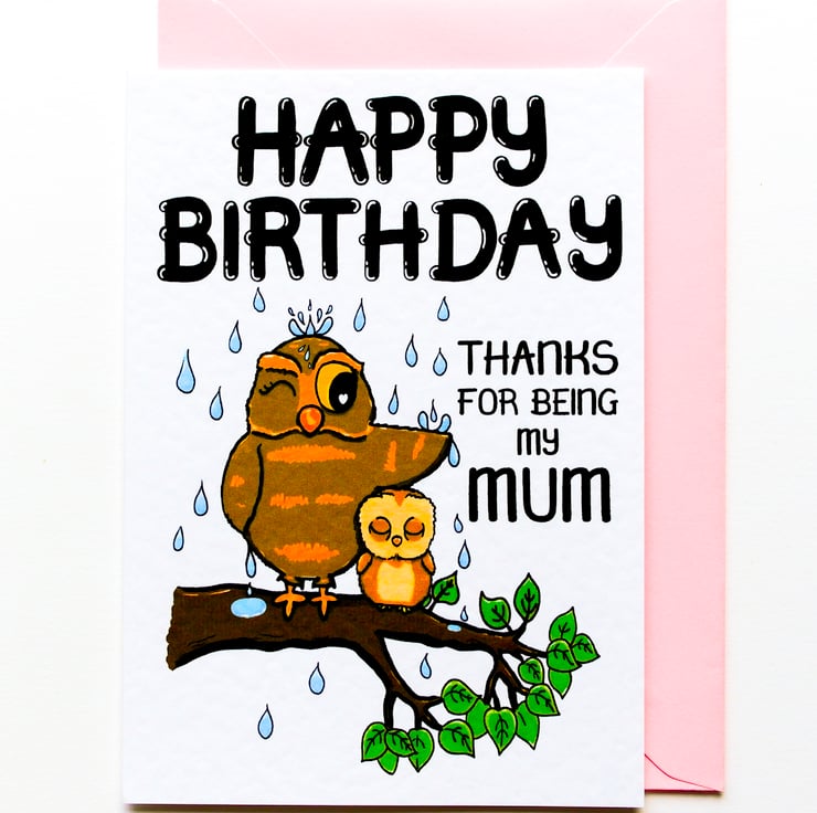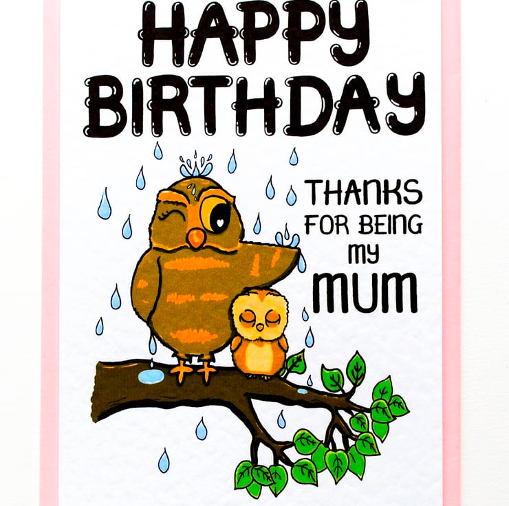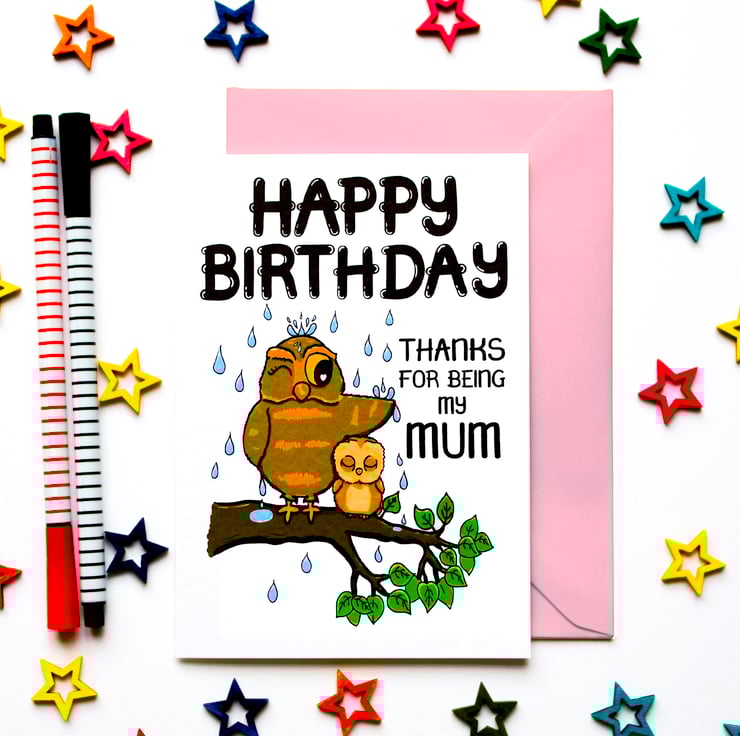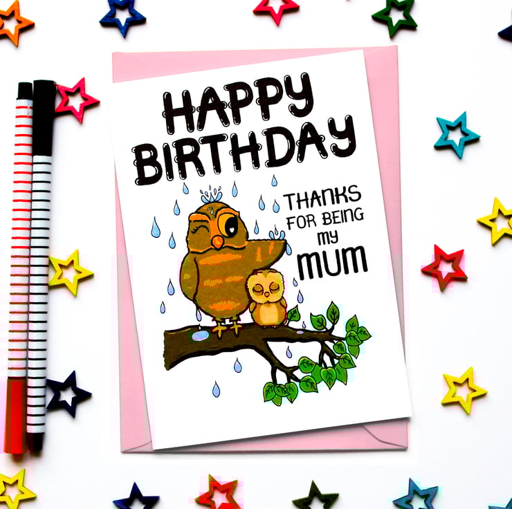 A cute owl birthday card for your Mum, also letting her know that you are thankful she is your Mum!