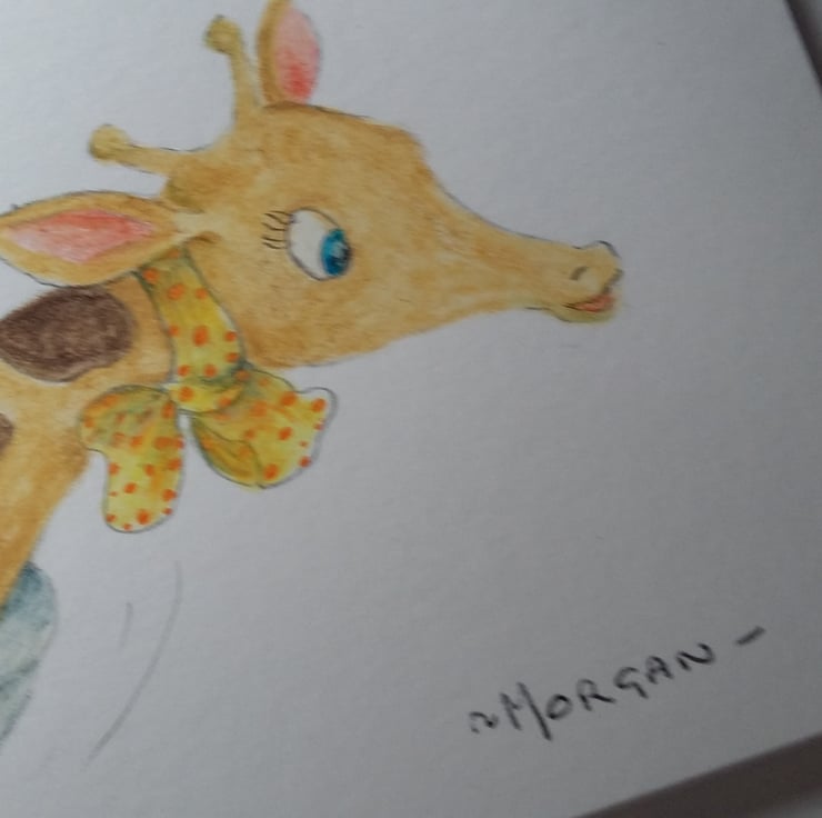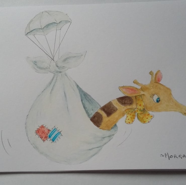 Hand painted card 7" X 5" FOR A NEW BABY WHITE CARD AND BLANK INSIDE