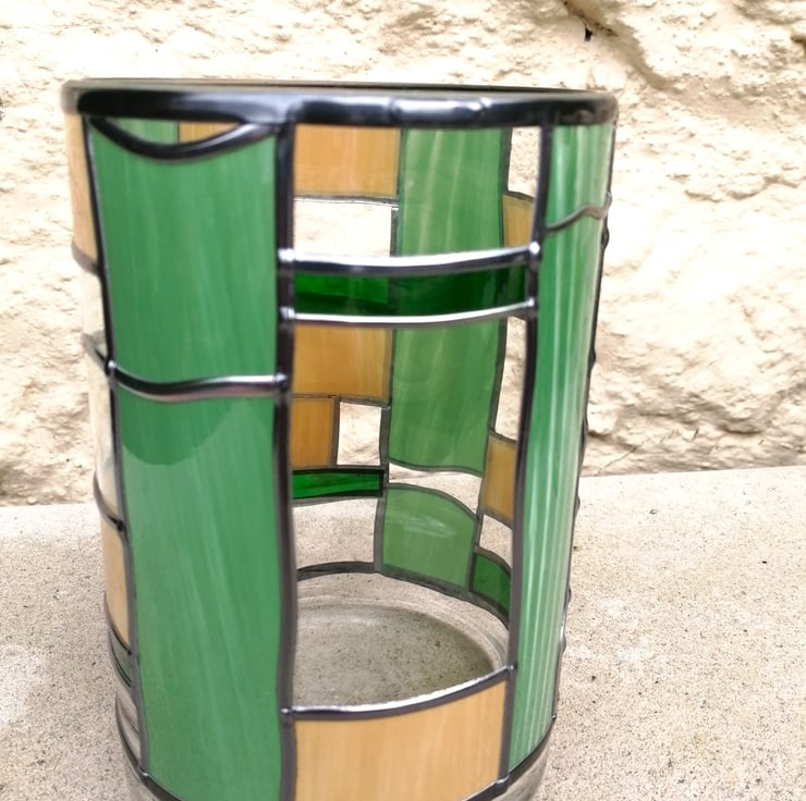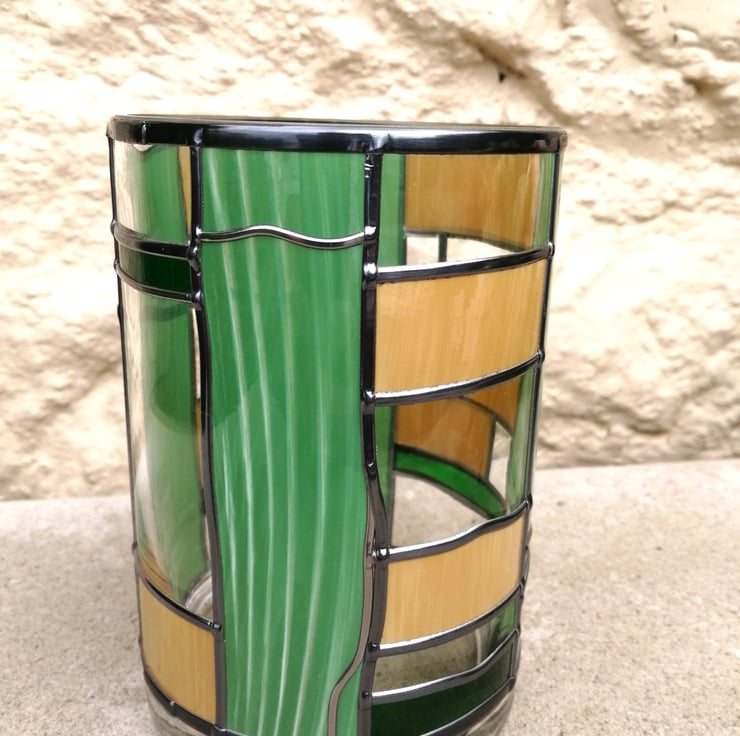 Papyrus is a Stained Glass Effect Flower Vase with a Hand Leaded Art Deco design