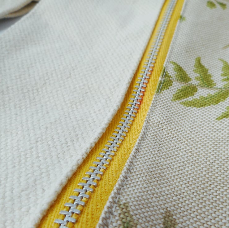Fabrics are both offcuts recycled from a local curtain maker. The fern print is Forest Fern French Linen by Frank Thomas Interiors. I don't know the provenance of the cream weave, but I can tell you it's a beautiful quality weave with a soft, luxurious handle.