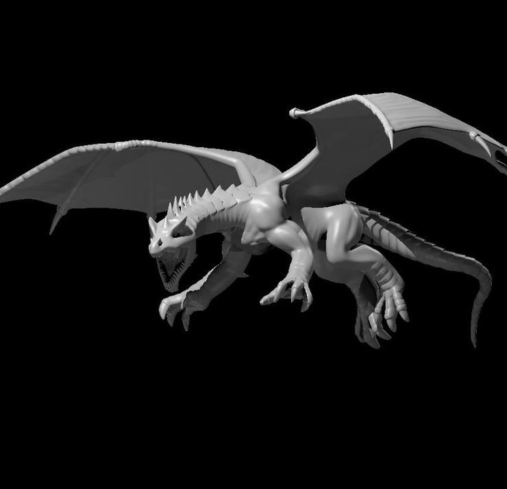 A green dragon is recognized by its curved jawline and the crest that begins near its eyes and continues down its spine, reaching full height just behind the skull. A green dragon has no external ears, but bears leathery spiked plates that run down the sides of its neck.