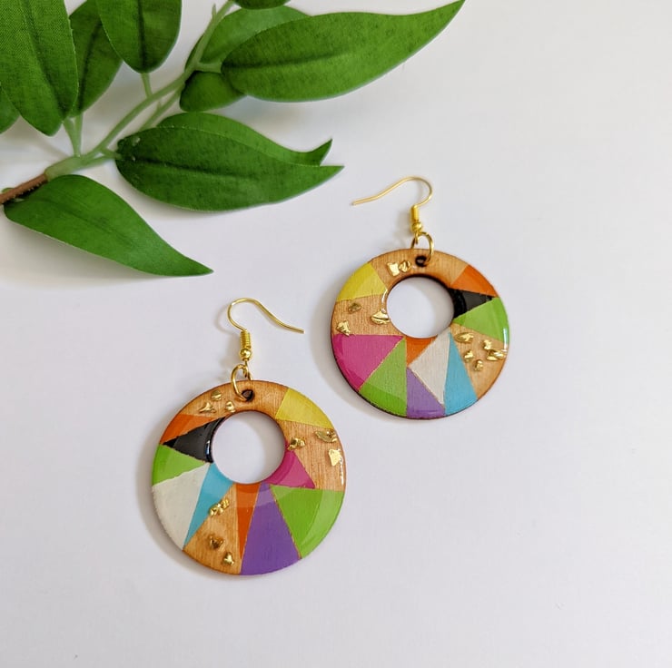 Wooden Circles of Geometric Random Triangles of colour