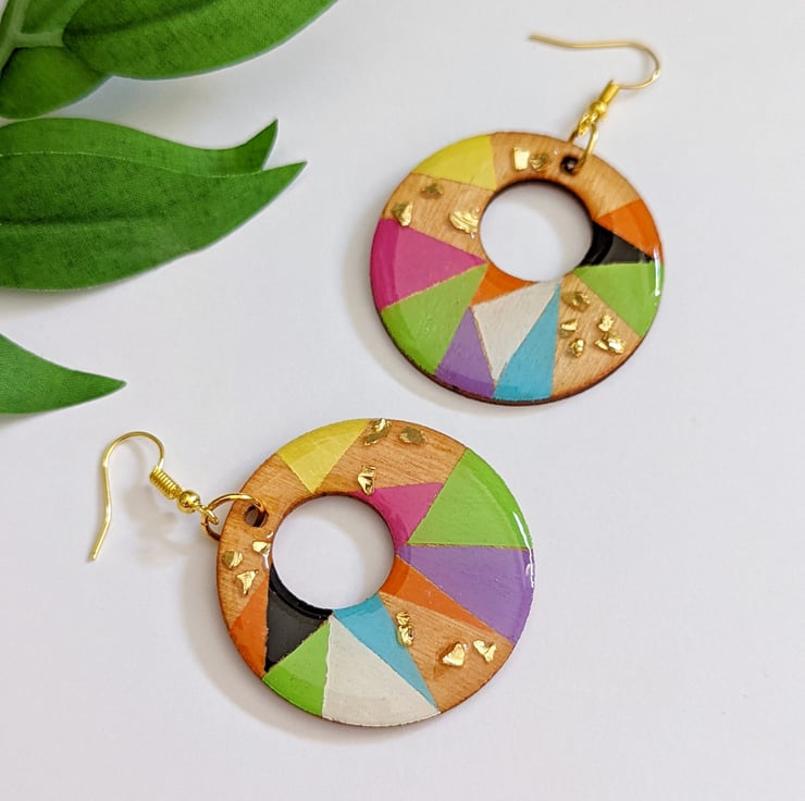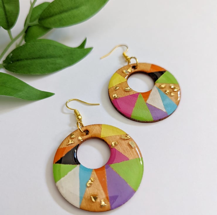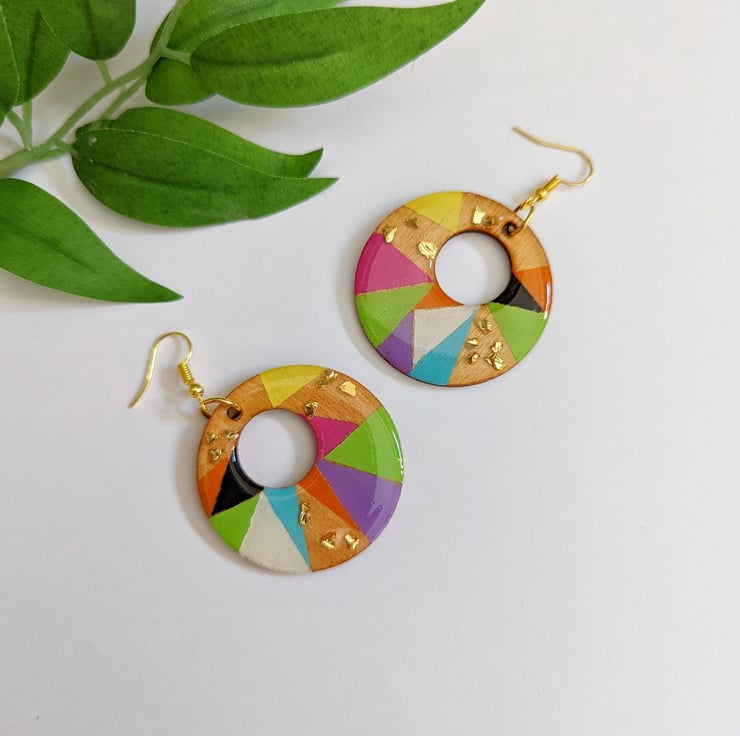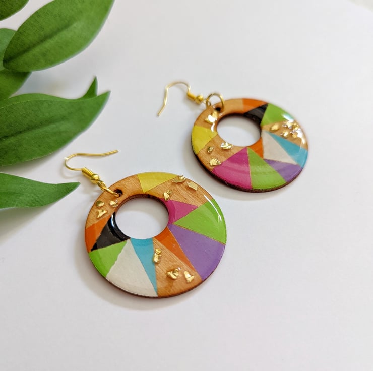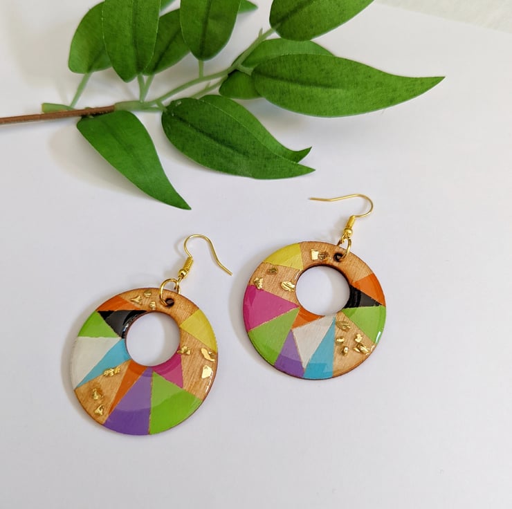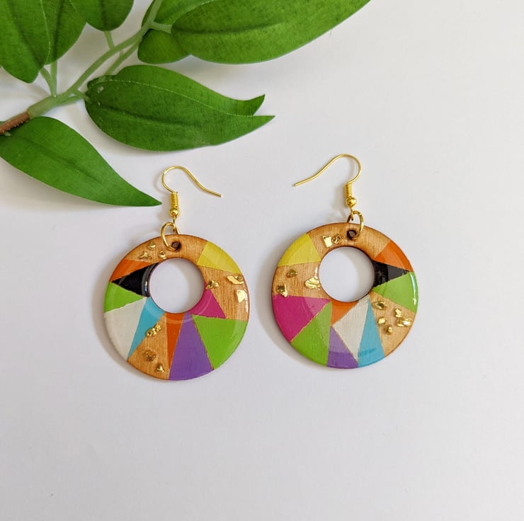 Bright Cheerful and Eye-catching earrings with speckles of gold shard glass