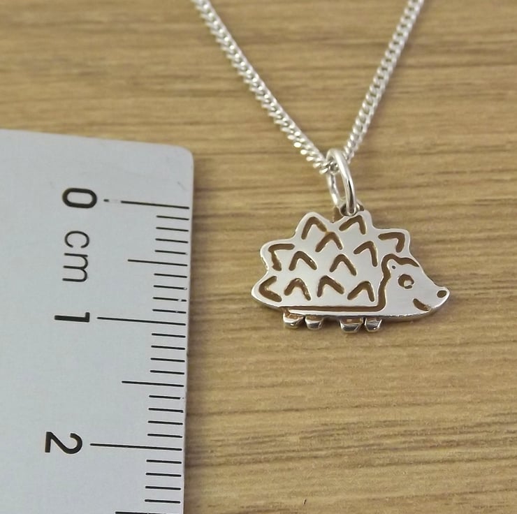 This hedgehog jewellery set includes a pendant and a pair of stud earrings which have been lovingly crafted by hand. They are made from recycled sterling silver and are etched before being cut out with a piercing saw, the edges are then smoothed using files and emery paper before it's carefully given their shape using a punch and hammer. Pins are then added to the back of the earrings. Brown resin based enamel is added to the etched areas before they are polished. They are sent in boxes made from 80% recycled card.