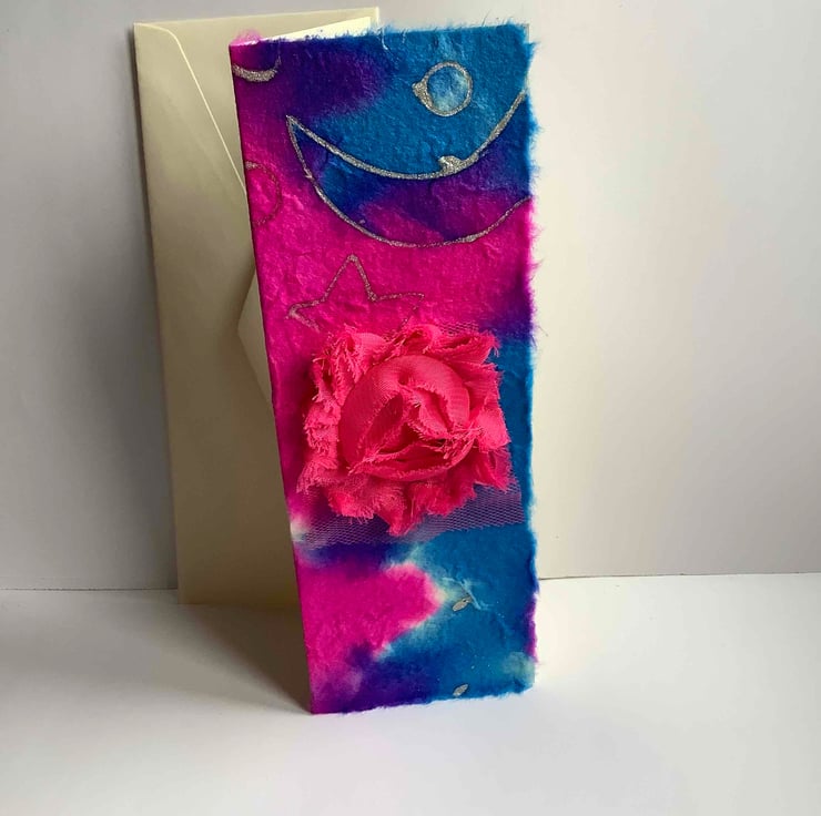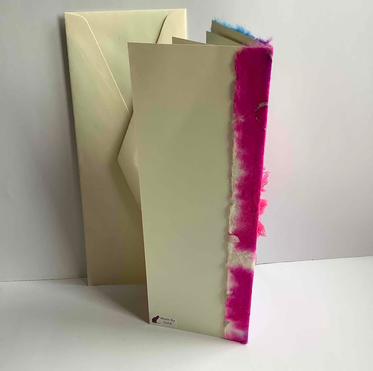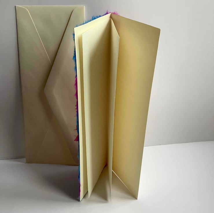 This is a handmade card which is blank for your own message. The card and envelope are ivory and the insert is also ivory.