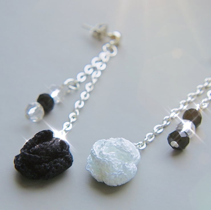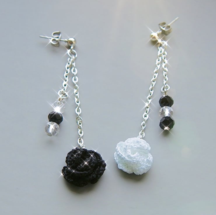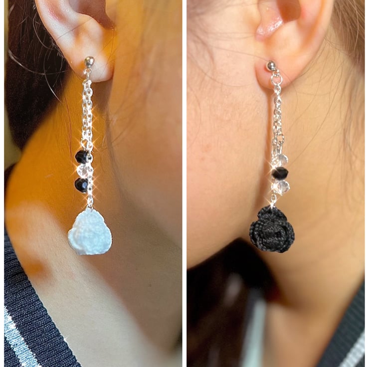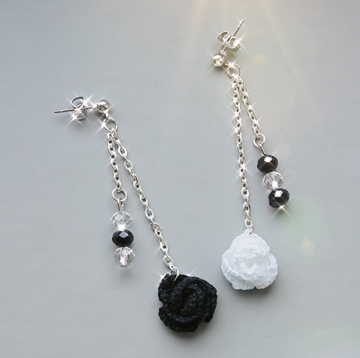 Earrings made with 6mm Clear and Black Crystal Glass Beads Embroidery Threads.