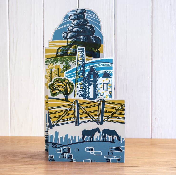 This Tin Mine fold out scene is based on my earlier print Tin Mine. It would make a great moorland scene for your mantlepiece or windowsill.