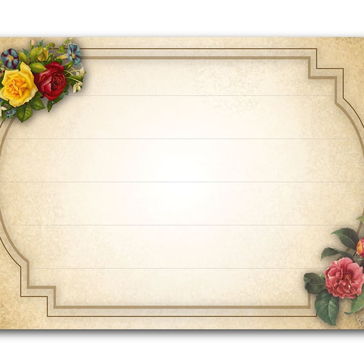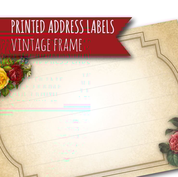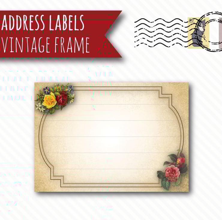 A pack of 10 x self-adhesive address labels with a vintage background and flowers design. Handmade by me on a digital printing press.