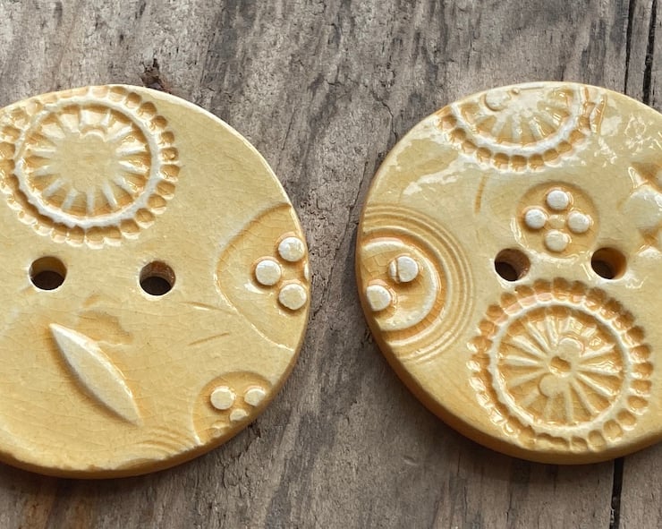 Fabulous handmade Ceramic Round Buttons. These buttons have been formed from Earthenware clay and twice fired in the kiln.
