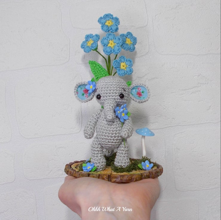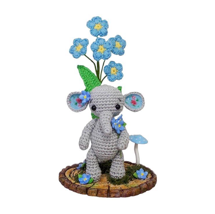 Crochet forget me not elephant sculpture. Elephant ornament.  Elephant gift.