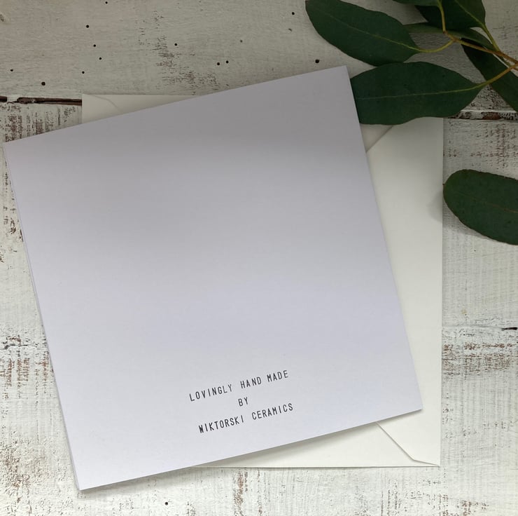 This gift card is perfect to give as a card and gift all rolled into one. This pretty design has a one-off ceramic design attached to the card so this can be received as a card initially. It is glazed in a lovely white glaze. The piece of pottery can then be either framed or taken off and used as a Love charm.