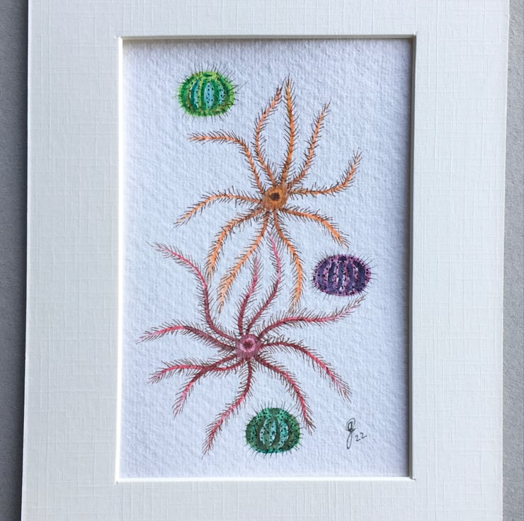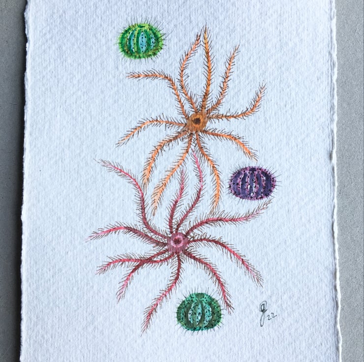 This is hand painted using artist quality paint and pigment marker on hand made Khadi watercolour paper, which has a hand torn deckle edge.