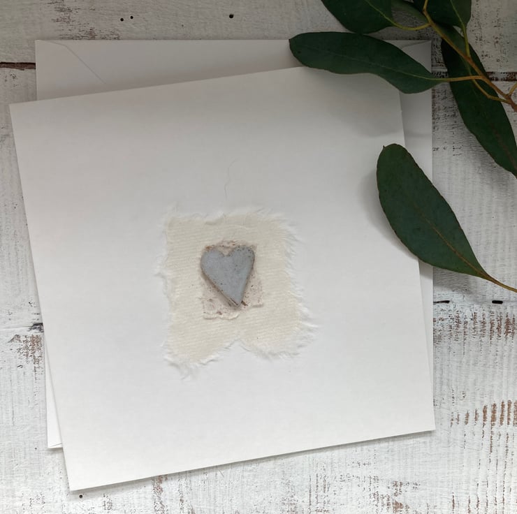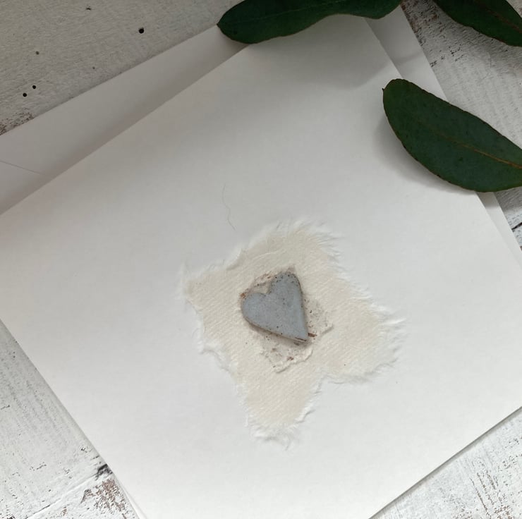 This gift card is perfect to give as a card and gift all rolled into one. This pretty design has a one-off ceramic design attached to the card so this can be received as a card initially. It is glazed in a lovely matt white glaze. The piece of pottery can then be either framed or taken off and used as a Love charm.