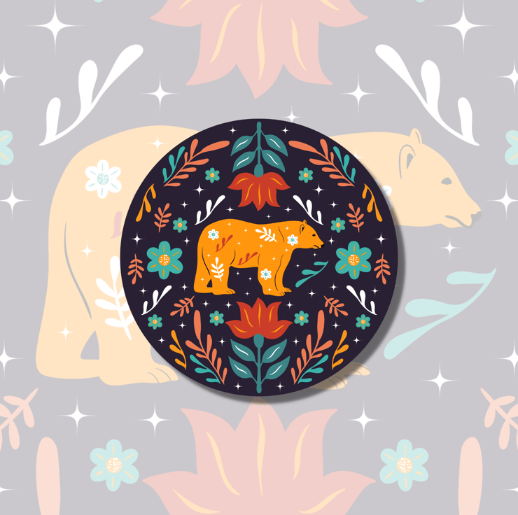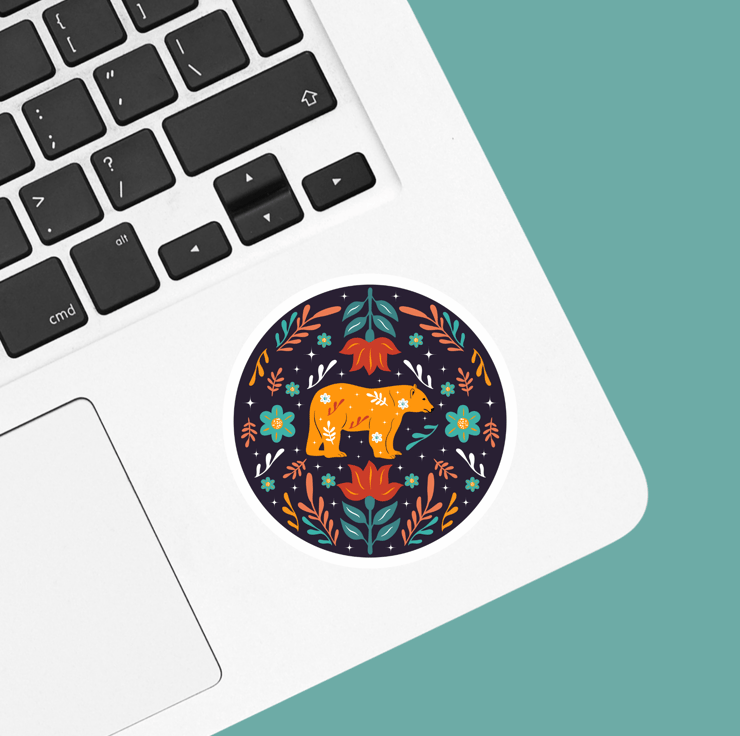 This adorable floral folk art style bear sticker is perfect to add to your laptop as a decal, to decorate your planner or as a gift to a nature-loving friend.