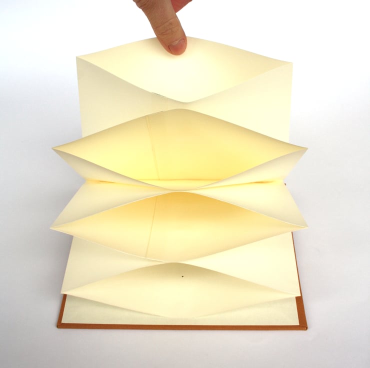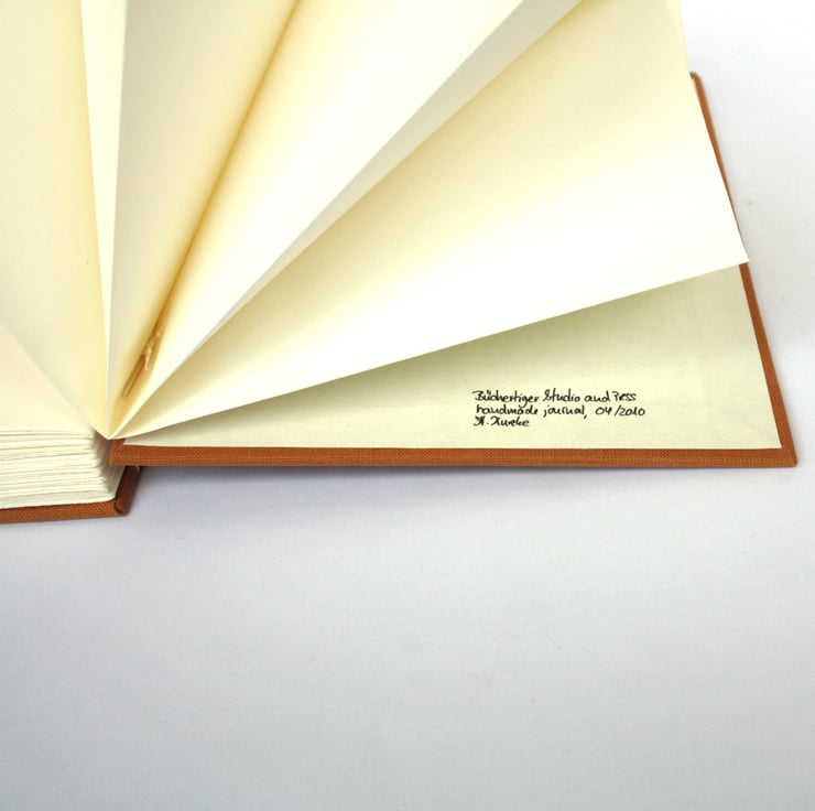 The book is bound in a Coptic style which allows it to open completely flat for ease of use.