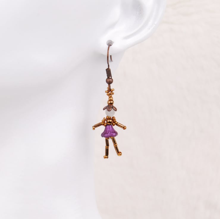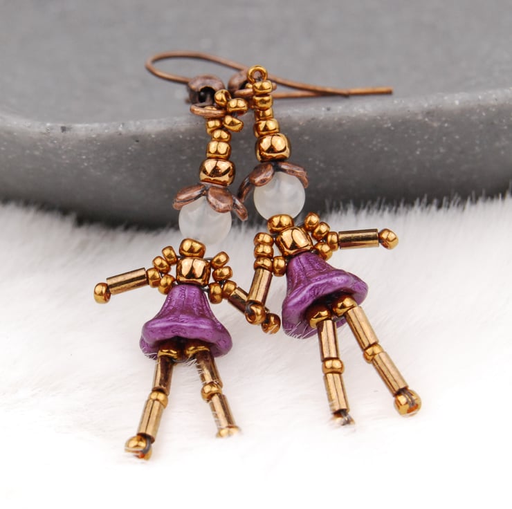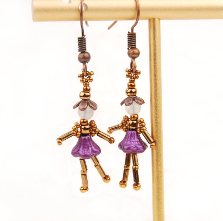 I had the idea for these little fairies when making beaded accessories for my dollhouse. I thought they would make fun earrings and love the way they look like they are dancing as they dangle.