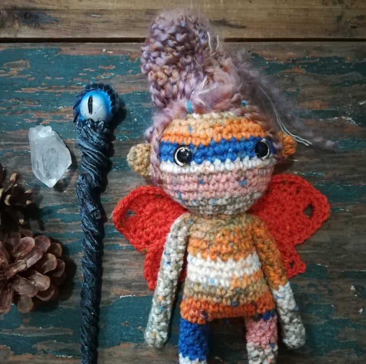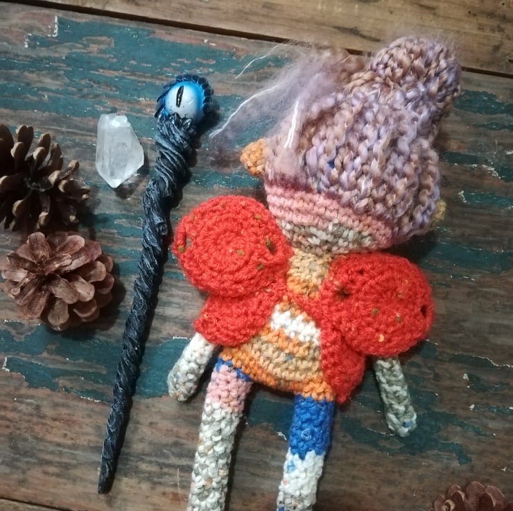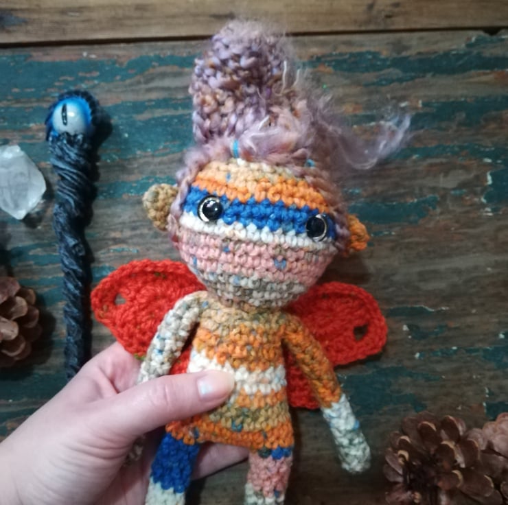 This beautiful sprite is made from a lovely mottled yarn in pretty colours.
