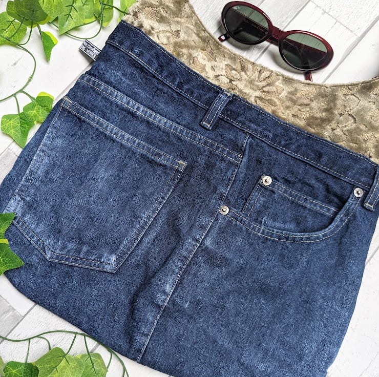 Both sides of the bag feature pockets from the original jeans which are all fully usable, giving the bag five outer pockets. There is a leather patch to replicate a jeans label on one of the side.