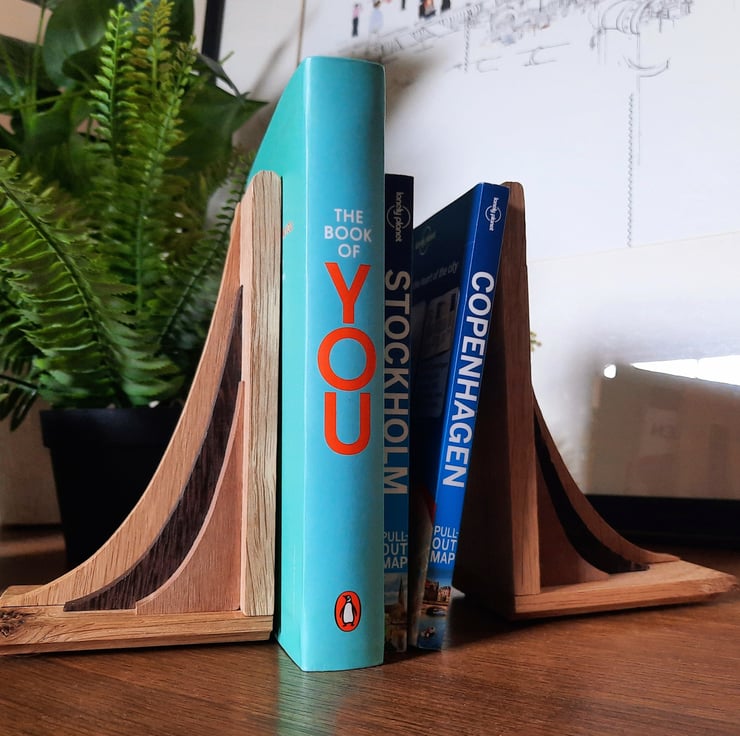 My bookends are handmade in Eastbourne from off-cuts of solid oak, wenge and walnut, all sourced from the UK. They are finished with Annie Sloan Wax for protection and longevity.