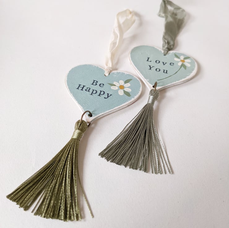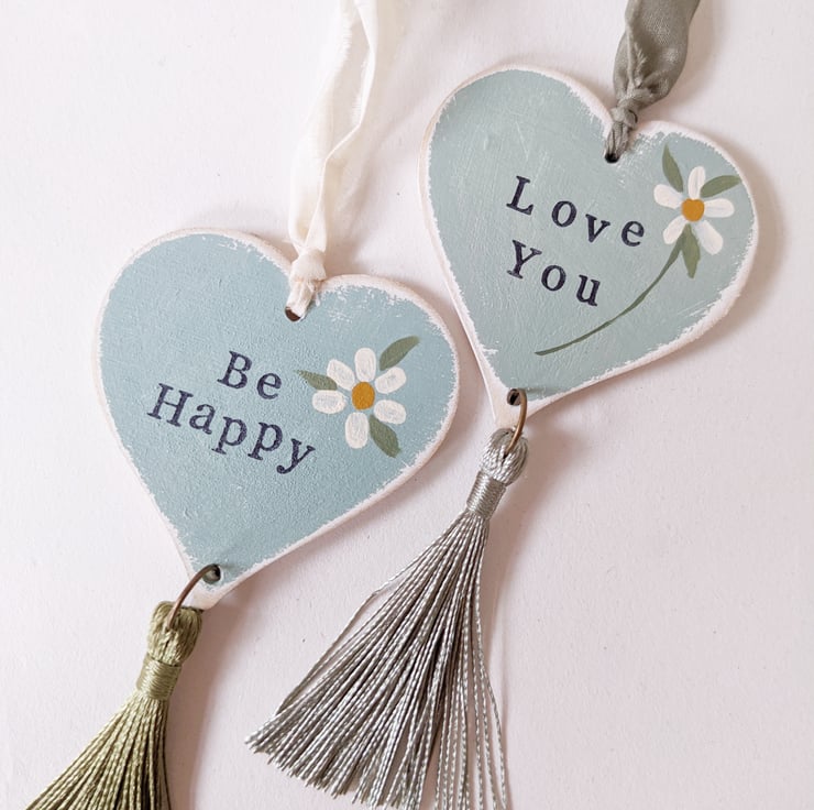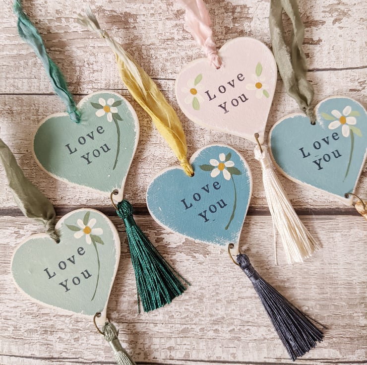 These little birchwood hearts are all individually hand painted, and stamped with words of love!
