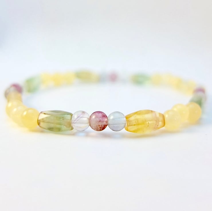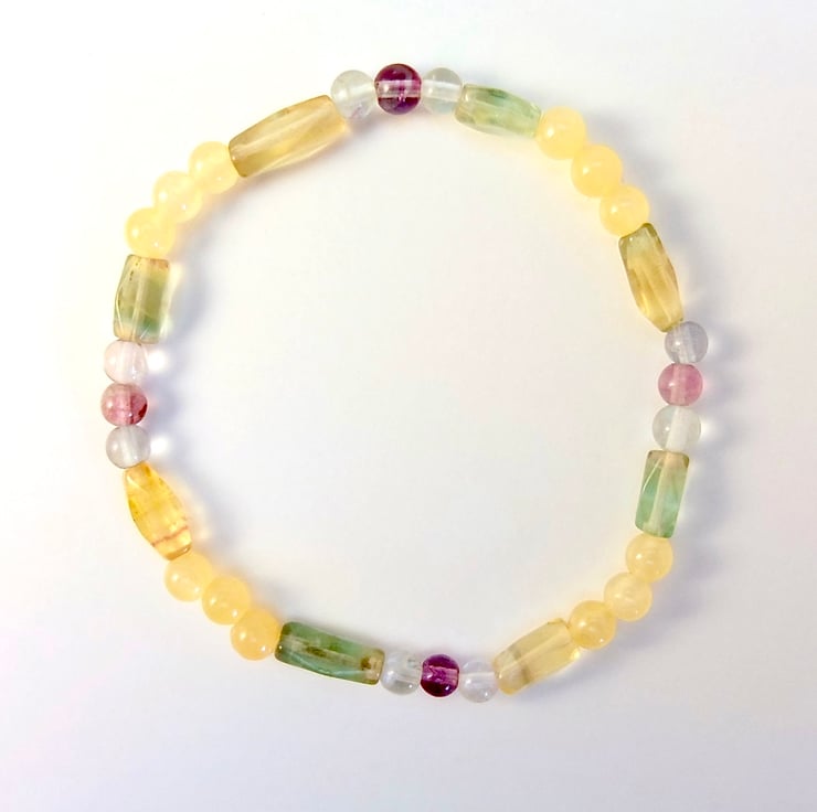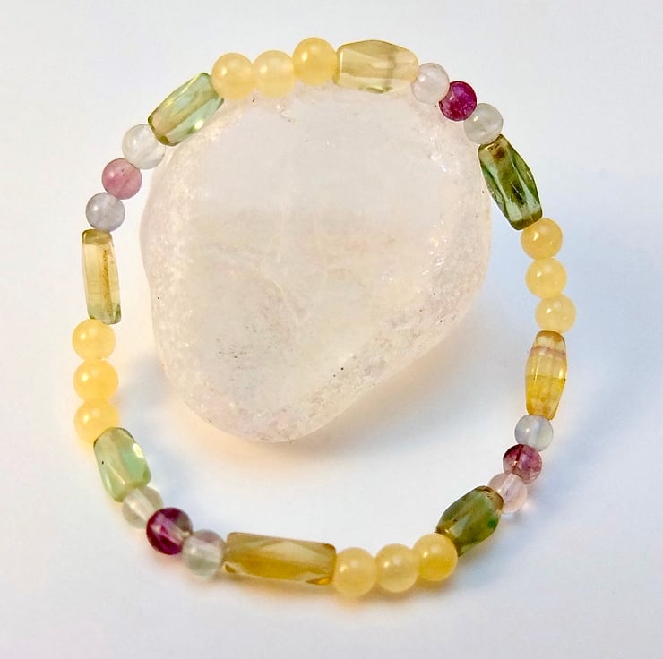 Dainty, petite bracelet in pastel greens and yellows with a touch of purple.