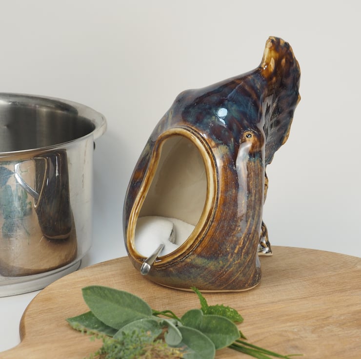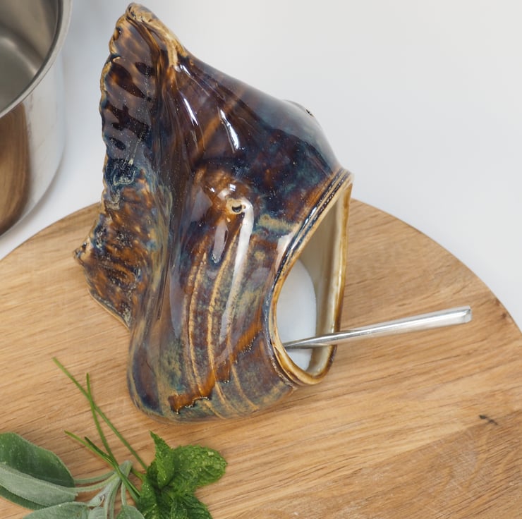 Add a touch of fun to your kitchen with this fish shaped salt pig!.