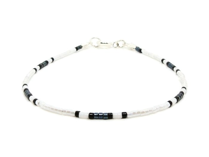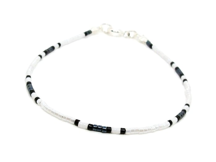 In this bracelet there are shiny black & white seed beads separated with a hematite shade.