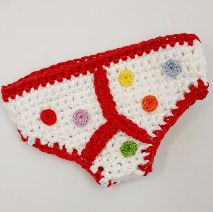 These cheerful Y fronts with their colourful spots are crocheted in two weights of cotton.
