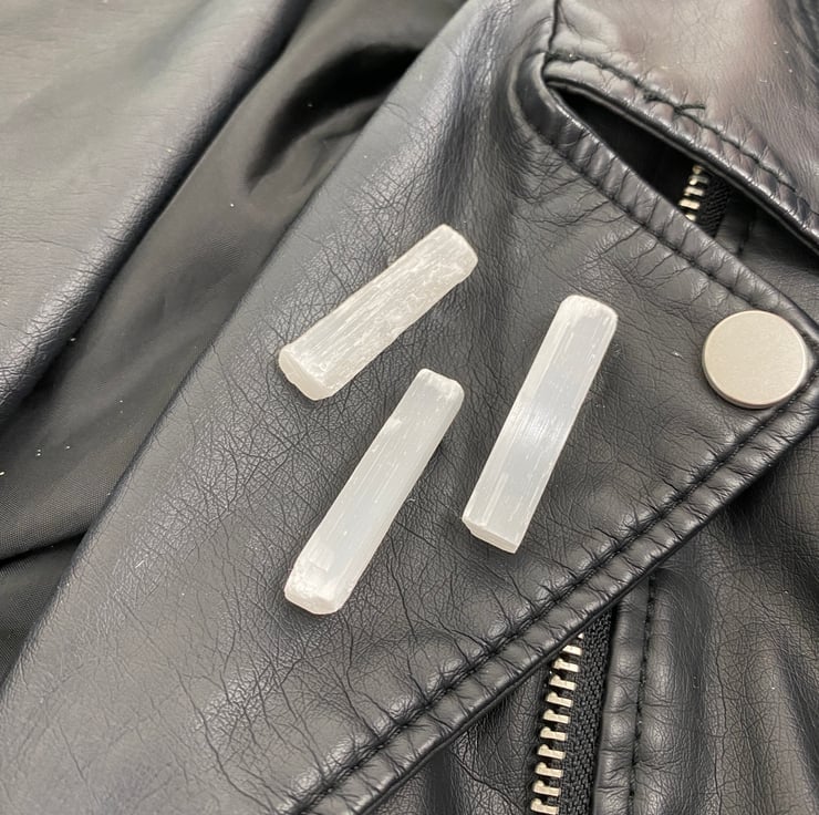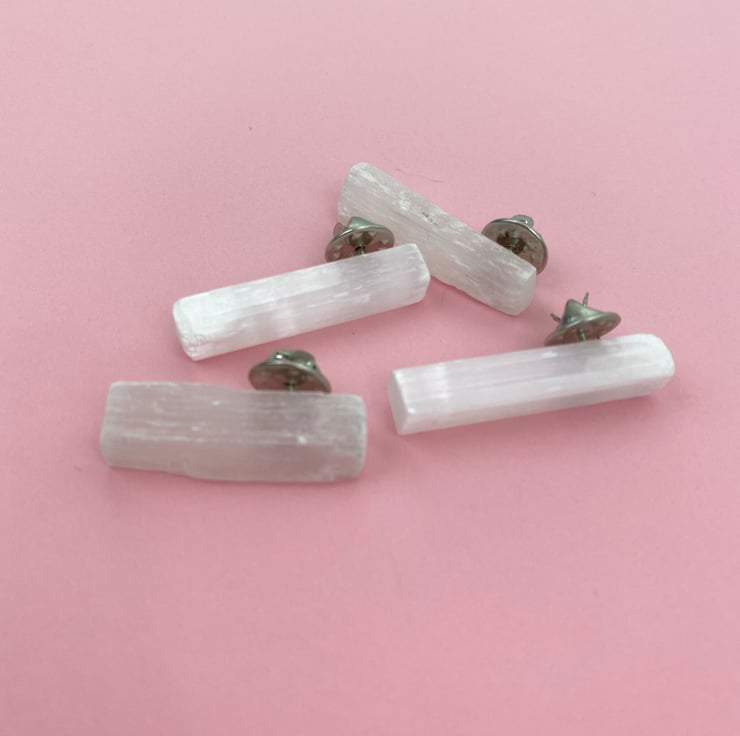 A raw natural Selenite crystal pin measuring between 30-40mm.