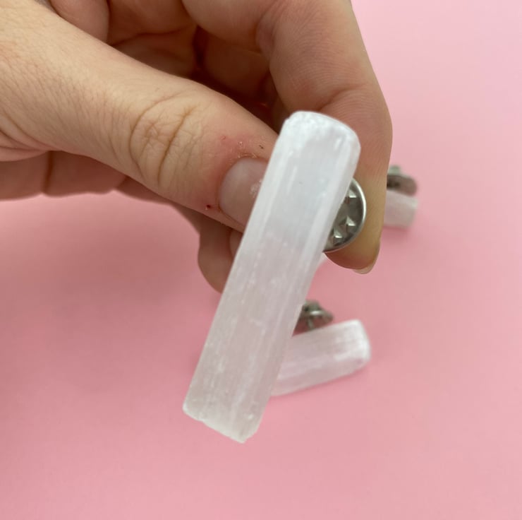 With a love of crystals I was looking for a way to be able to use them as an accessory that wasn't jewellery and had the idea of turning them into pin badges to be able to easily move them from outfit to outfit instead of having them hidden away in my bag or bra.