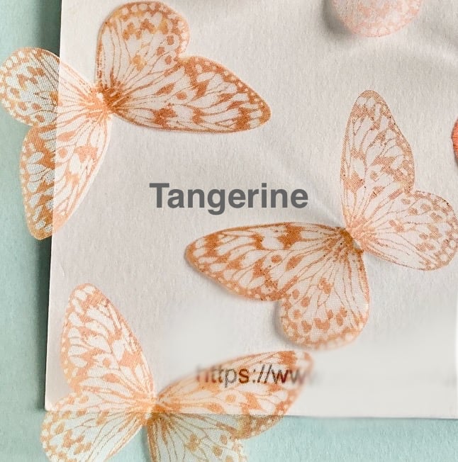 Hand printed pure silk organza butterflies in a choice of orange shades and two sizes.