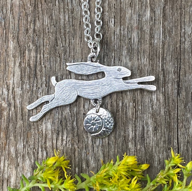 Made using traditional jewellery making techniques, including piercing out shapes with my jewellers saw, soldering, filing, hammer texturing, metal stamping and hand engraving. The finished pendant is oxidised to highlight detail.