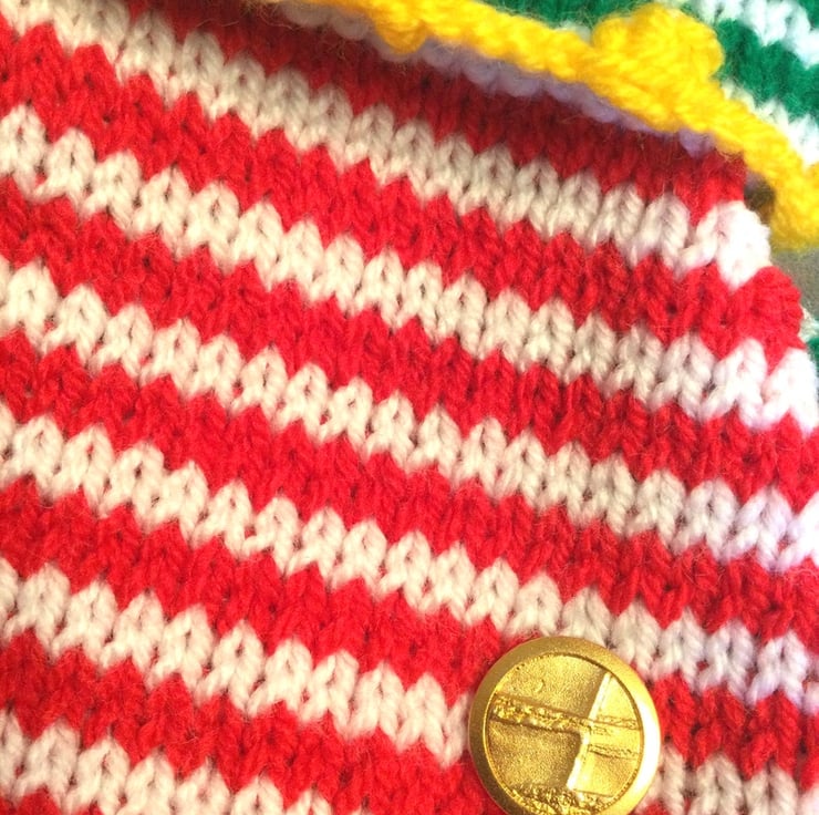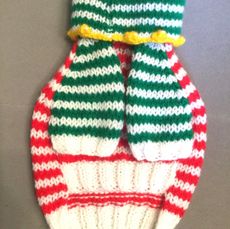 made with red, white and green acrylic yarn