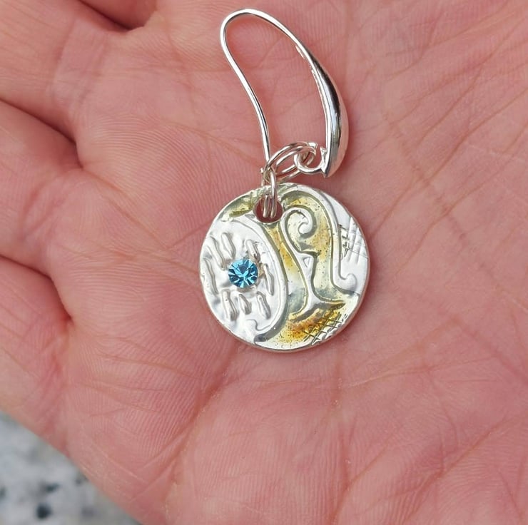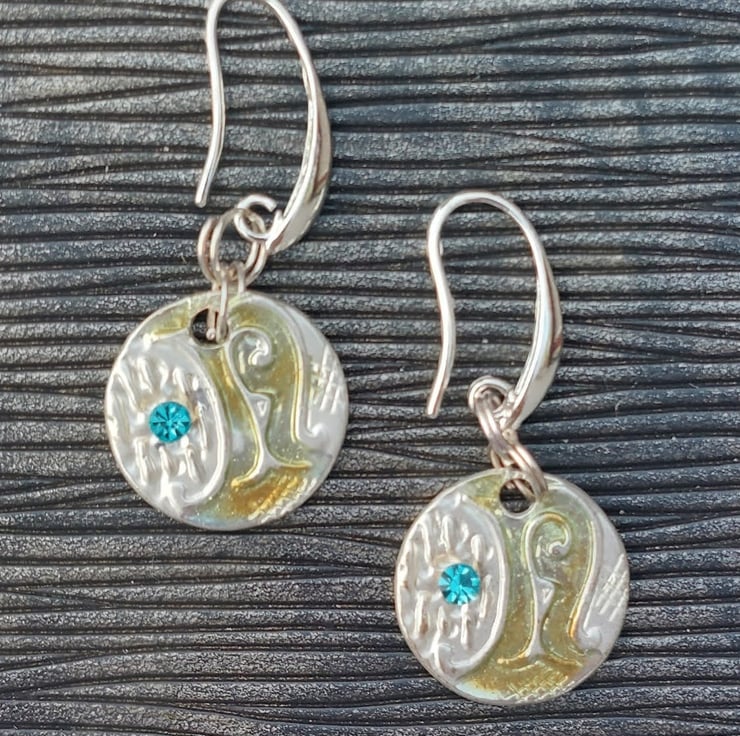 These circular disc earrings are made from upcycled materials from a special art shop of collectable items. So are very unique and one of a kind.