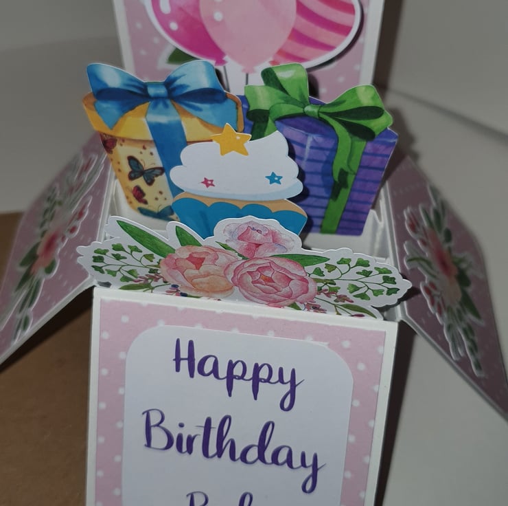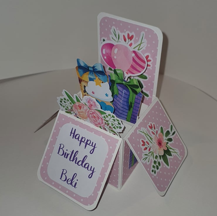 Flowers and Balloons Birthday Box Card - can be personalised.