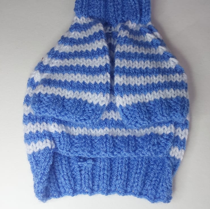made with blue and white acrylic yarn