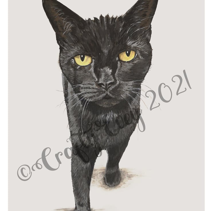 This cheeky black cat is stomping up asking you to make him part of your life. A perfect gift for cat lovers, the image is actually a portrait of my own fur baby Dave. I may be biased but I think he would make a very handsome addition to any home.