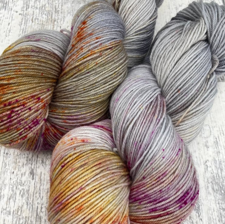 Skein of hand dyed yarn 75/25 merino nylon that has bounce and beauty and great for socks, shawls, mitts or whatever takes your fancy.
