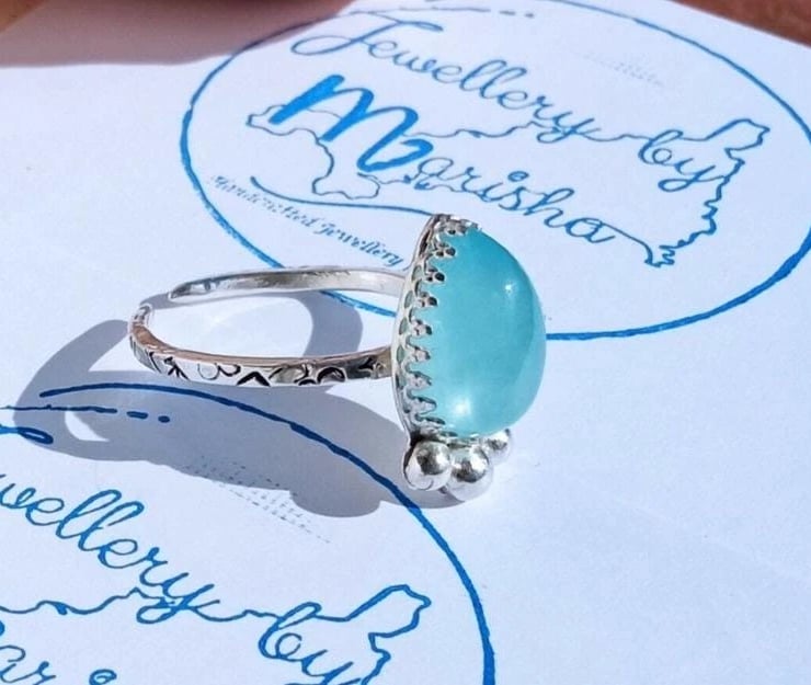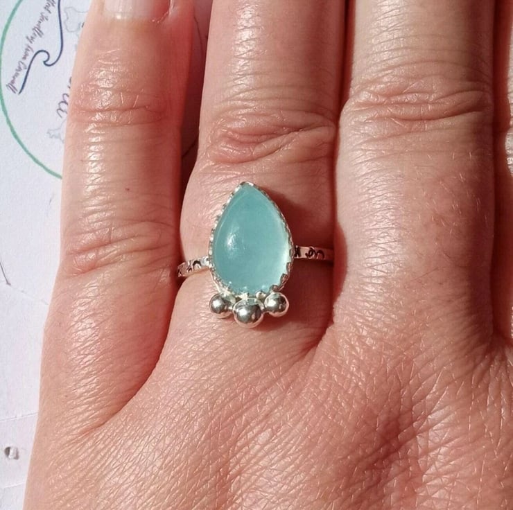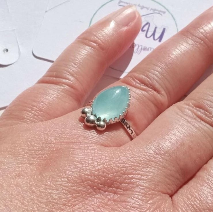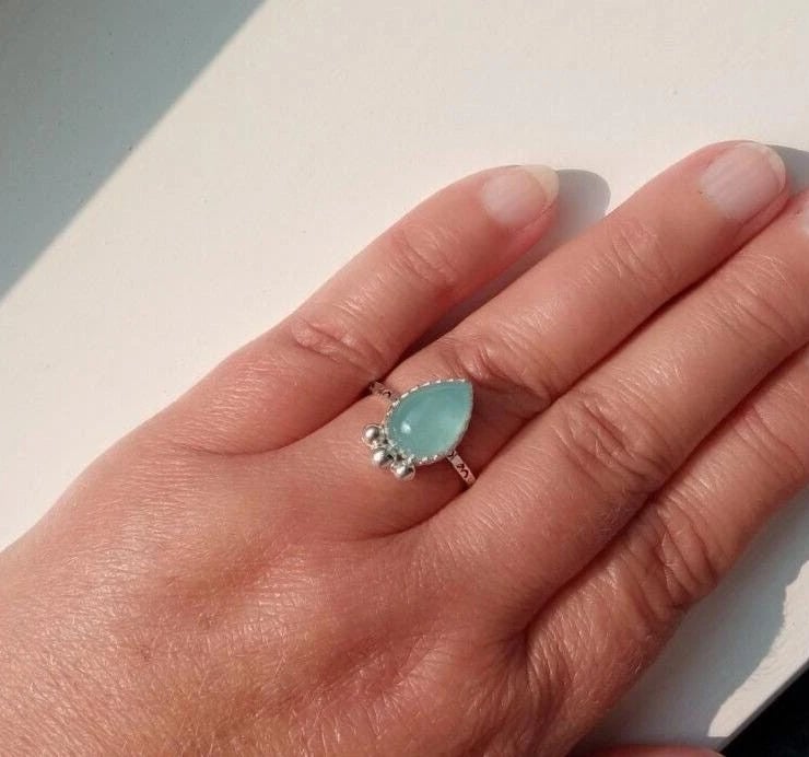 Aquamarine Ring Adjustable Sterling Silver Stacker Jewellery Gift Teardrop
